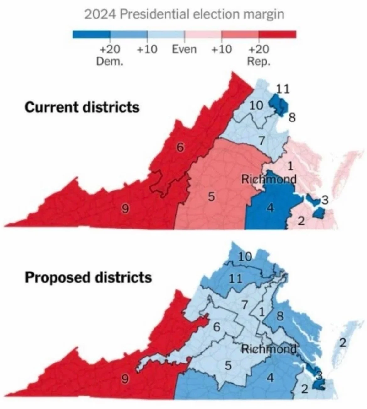 Virginia currently has 11 congressional districts. The boundaries of those districts determine: